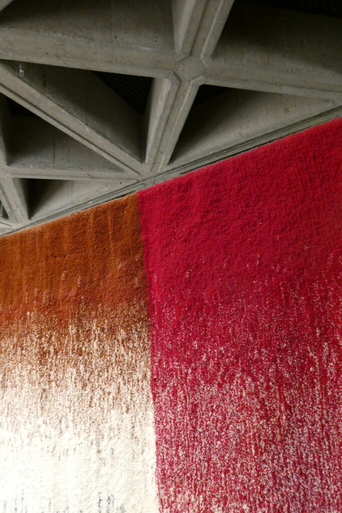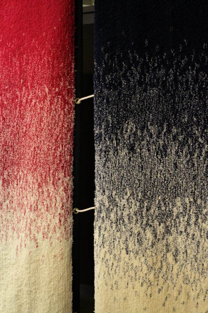 On the occasion of a collaboration with architect Lionel Jadot for the Le Mix hotel, we designed and produced space dividers in tufted wool, combining artisanal know-how with a contemporary approach to textile design. Conceived as immersive artworks, these unique pieces structure the space while preserving visual and sensory fluidity. The rich, vibrant texture of the tuft, combined with a deep color gradient, brings warmth and character to the environment. Together, they create insulation and provide privacy for the people working at the adjacent desks.
