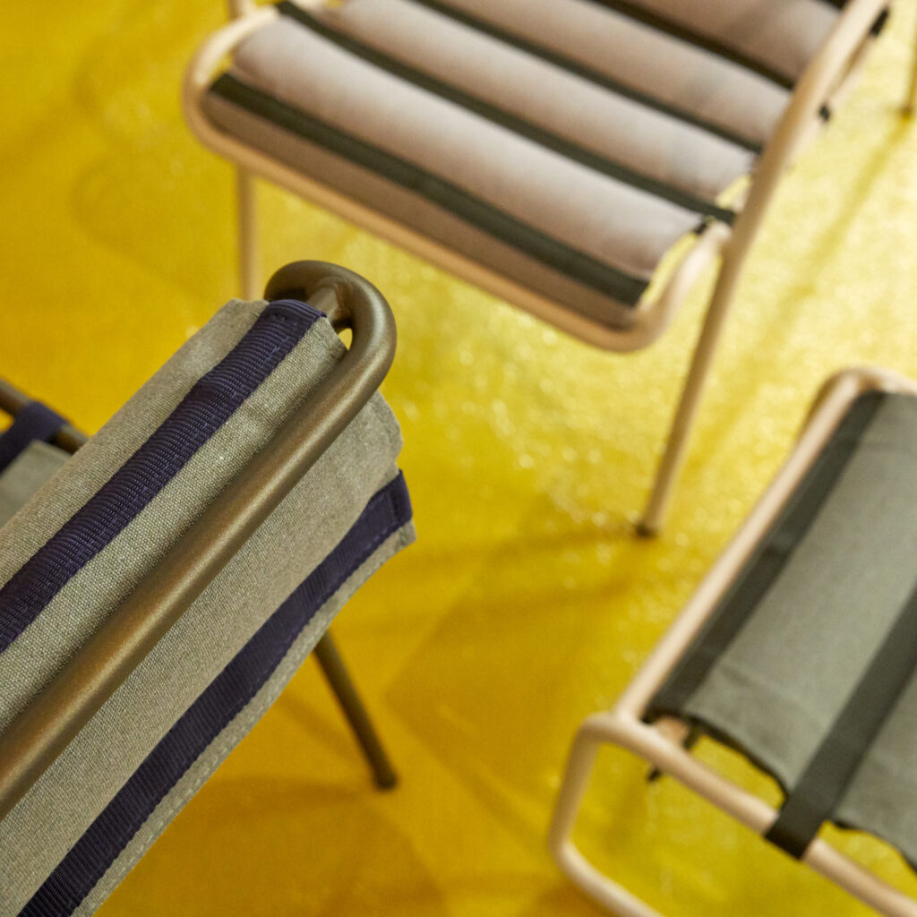 Le mobilier SABLON associe textiles déperlants Sunbrella® de Dickson Constant contenant 50 % de fibres recyclées et une conception pensée pour durer : assises déhoussables, matériaux faciles à recycler, et design intemporel qui s’adapte à vos envies.